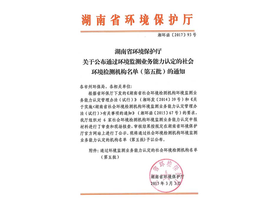 環(huán)境監(jiān)測業(yè)務(wù)能力認定書
